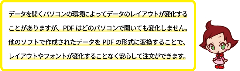 =PDF化をしてのご入稿をお願いします - 当店で対応していないソフト・アプリで作られたデータ