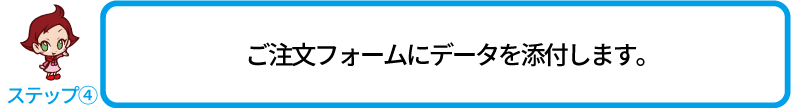 - ご注文フォームの一番下にファイルを添付する項目がありますので使用するファイルを選択してください。1度に最大10ファイルまで添付できます。