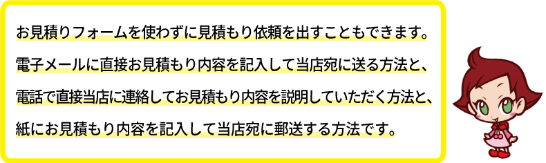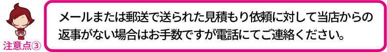 ※お見積もり金額は当店に届きましたメールへ返信する形でお伝えいたします。