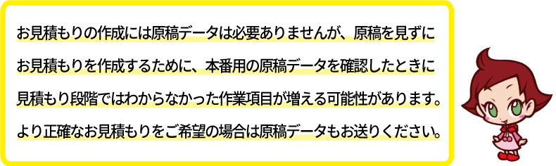 ※事前にお見積り内容を大まかにまとめていただくとスムーズに進みます。