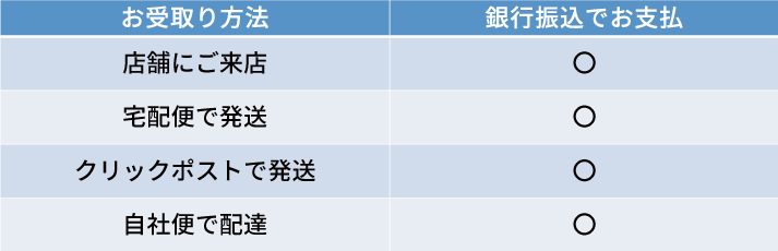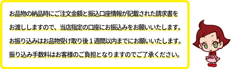 ※お振込みはお品物受け取り後1週間以内にお願いいたします。