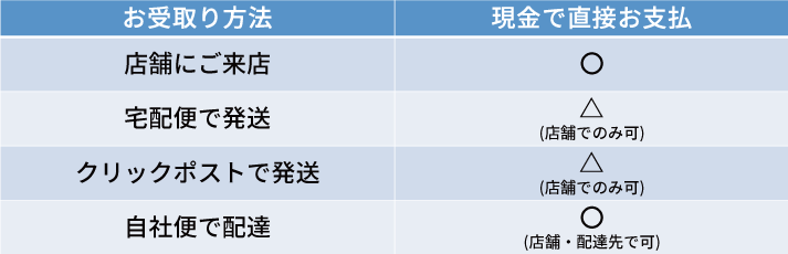 ※「直接お支払い」は銀行や運送業者を経由せずに支払うことです。