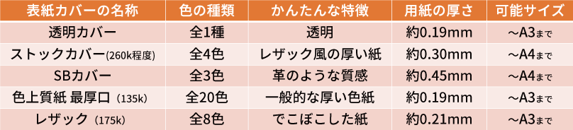 リング製本の表紙カバー 一覧