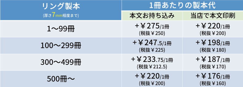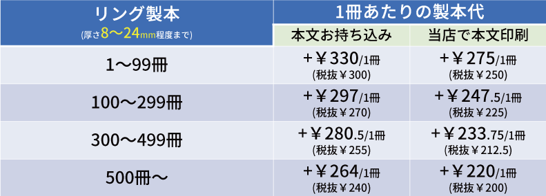 リング製本の価格