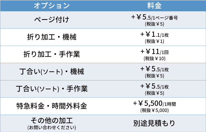 ※用紙サイズ・種類・枚数等次第でできないオプションもあります。
