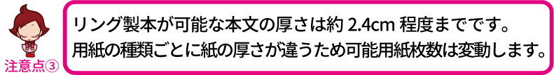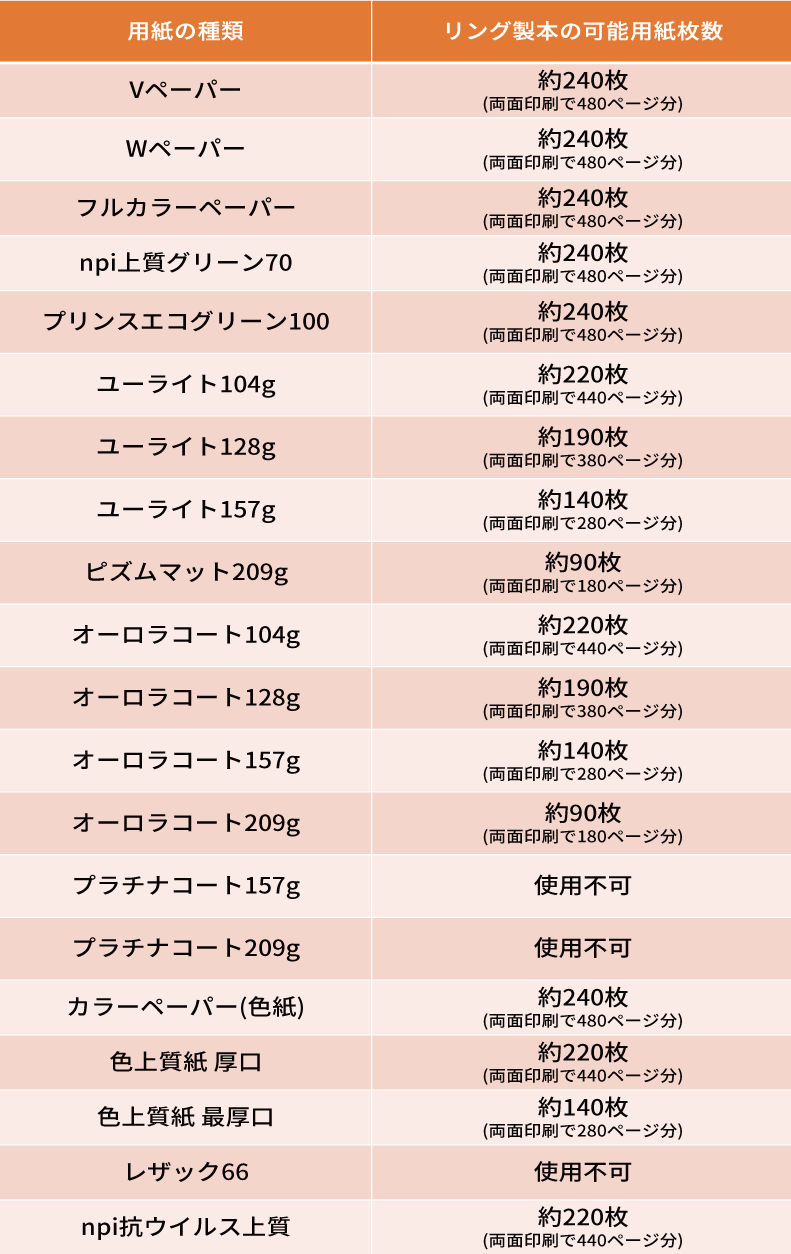 ※リング製本可能枚数は用紙の種類ごとに異なります。