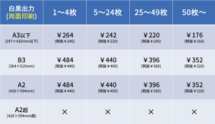 【両面】大型白黒出力 価格