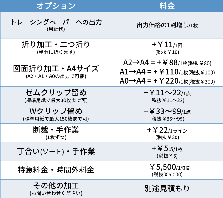 ※トレーシングペーパーは出力価格の1割増しで使用できます。