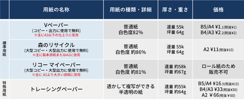 ※標準のコピー用紙に印刷した場合の料金です。