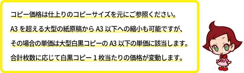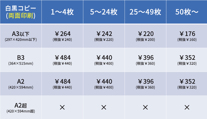 ※同一サイズの白黒コピーの合計枚数ごとに単価が変動します。