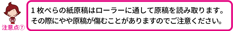 ※貼り合わせてある原稿、薄いまたは厚い原稿も同様です。