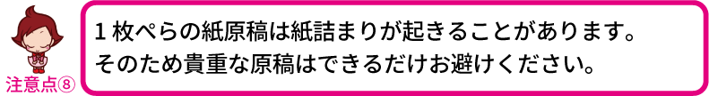 ※折りやカールのくせが強い原稿は傷みやすくなります。