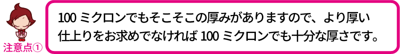 ※【100ミクロン・150ミクロン】から選べます。標準は100ミクロンです。