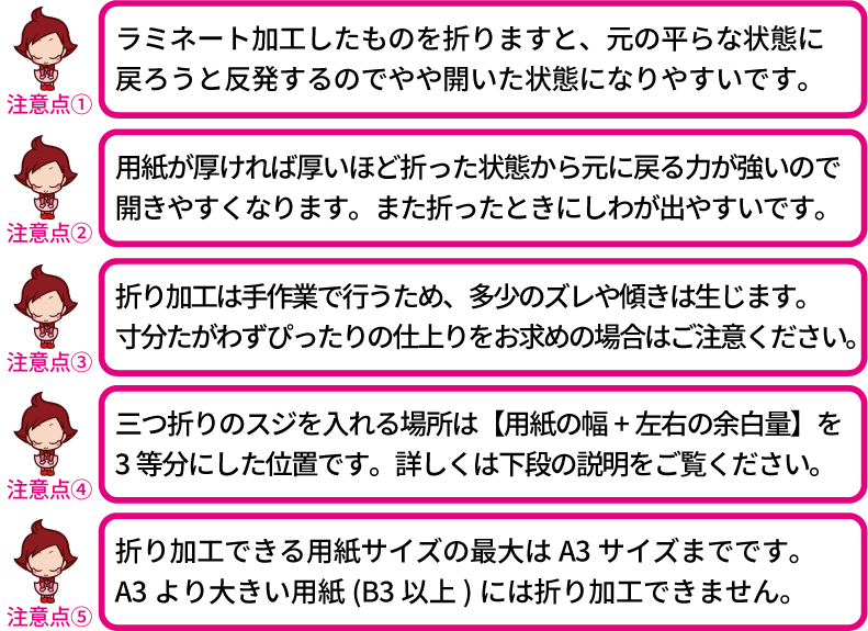 折り加工(スジ入れ加工)の注意点