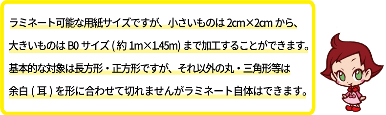 ラミネート加工に使用可能な用紙サイズ