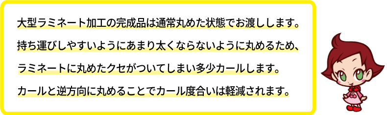 大型のラミネート加工でも基本的に同じ特徴です