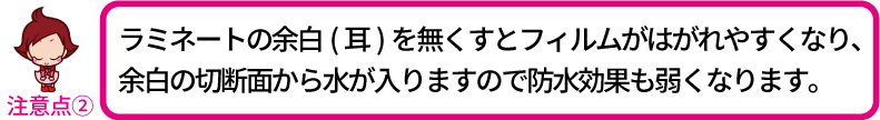 ラミネート加工における注意点