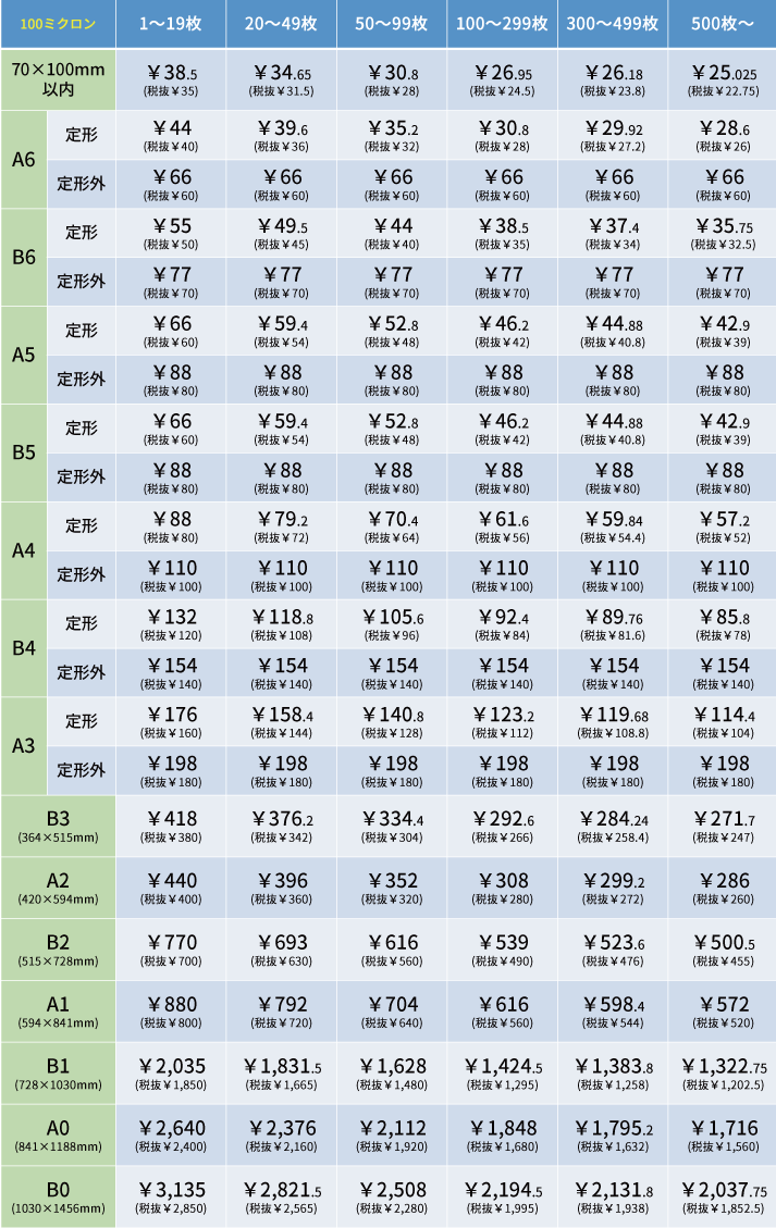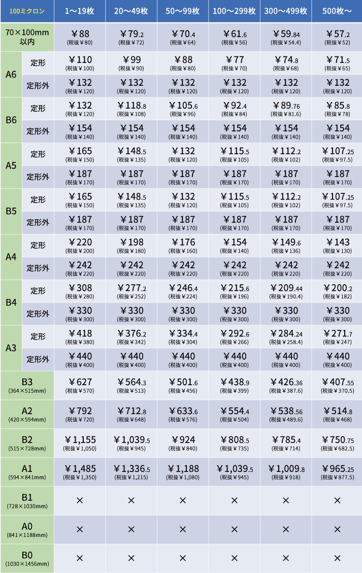 ※上記価格は1枚あたりの税込の金額です。