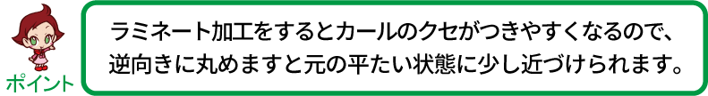 ※カールの向きと逆に丸め直すことでカールは軽減されます。