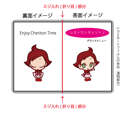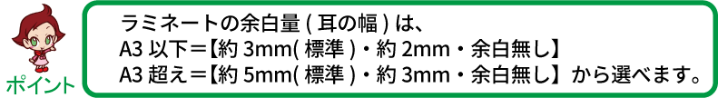 ※ラミネートの余白(耳)は便宜上灰色に塗っておりますが実際は透明です。