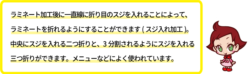 ラミネートの折り加工(スジ入れ加工)