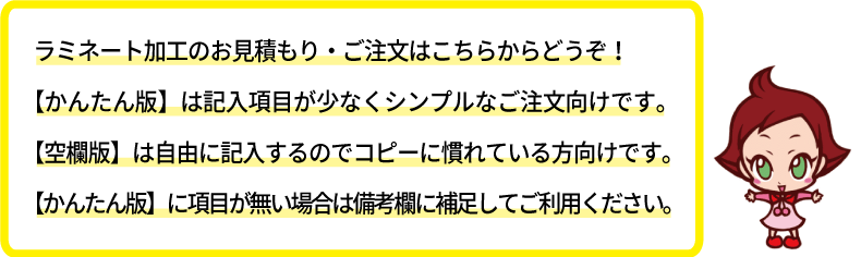 【かんたん版】ラミネート加工のご注文 【空欄版】ご注文フォーム