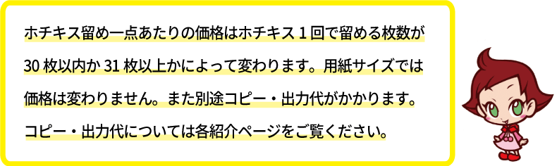 ホチキス一点留め・二点留め 料金