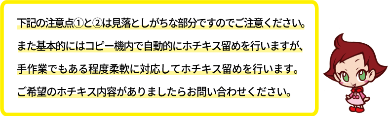 A3以上のホチキス一点留めはお問合せください