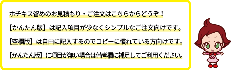 ホチキス一点・二点留めの共通ご注文フォーム