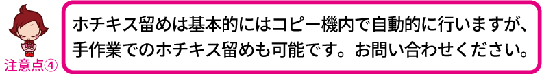 A3以上のホチキス一点留めはお問合せください