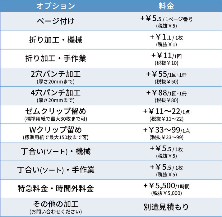 ※用紙サイズ・種類・枚数等次第でできないオプションもあります。