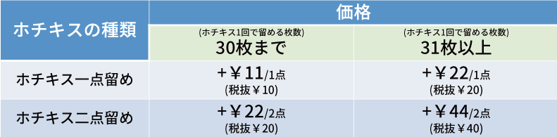 ホチキス一点留め・二点留め 料金