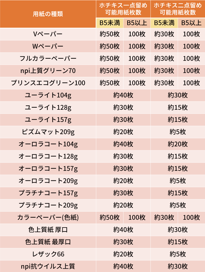 ※ホチキス可能枚数は用紙の種類ごとに異なります。