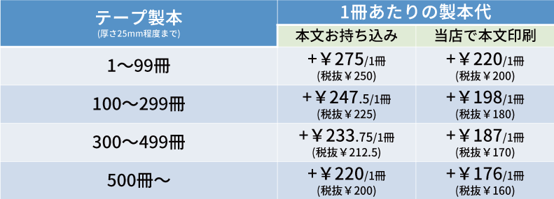 テープ製本 料金