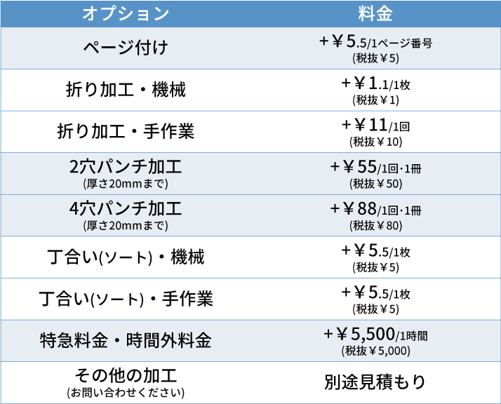 ※用紙サイズ・種類・枚数等次第でできないオプションもあります。