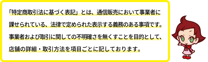 | 返品について | 商品(サービス)の性質上、受注販売の形式となりますのでお客様都合の返品はできません。 |
